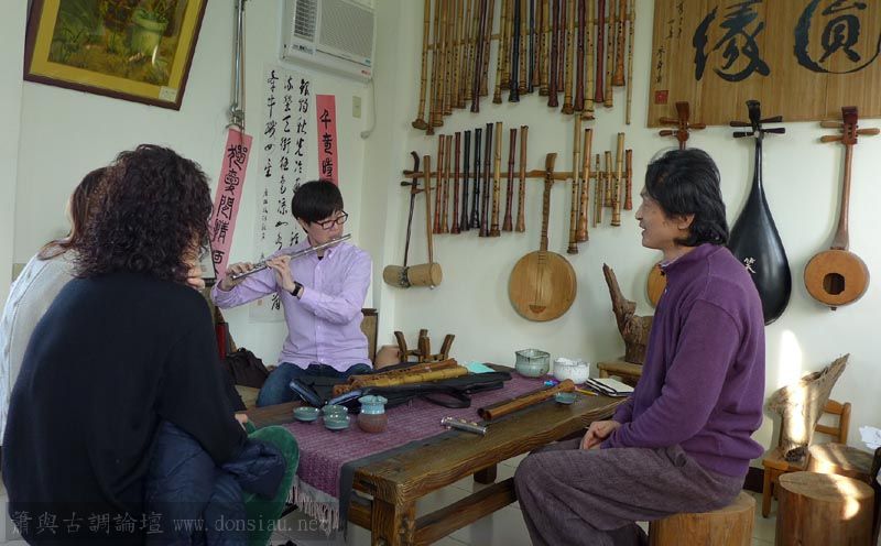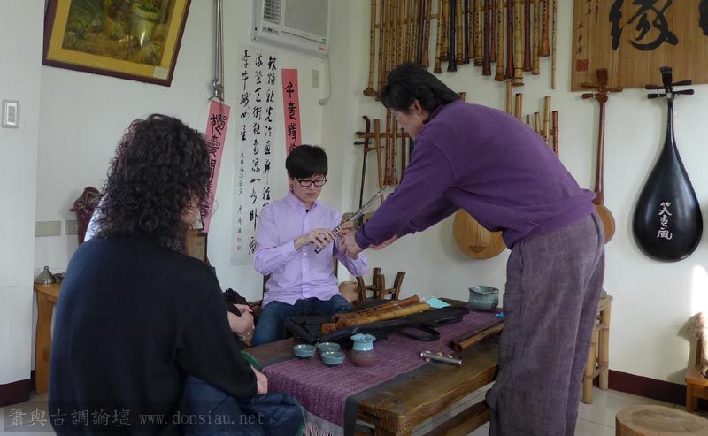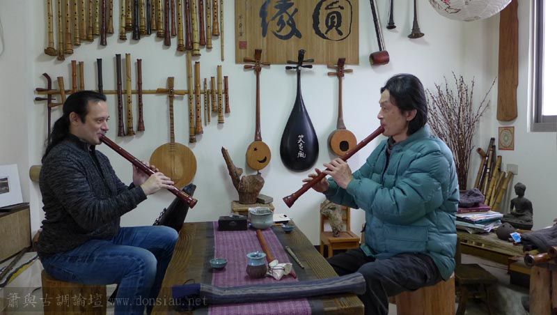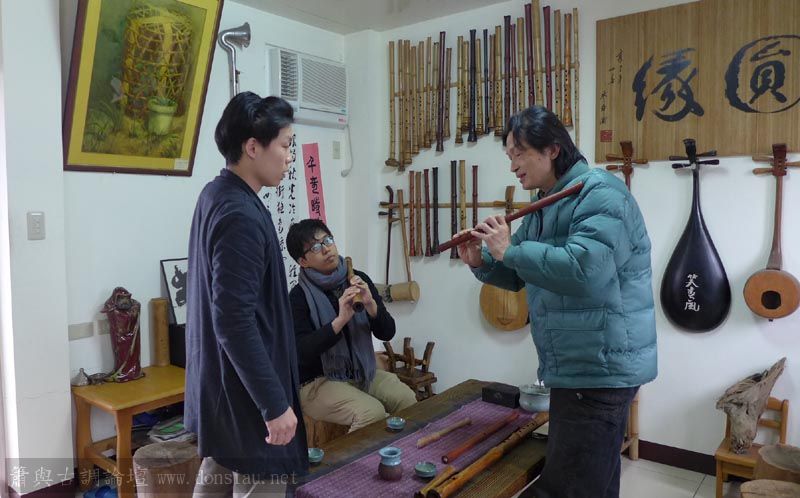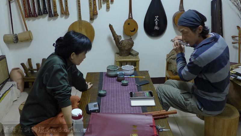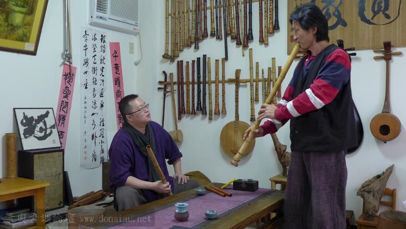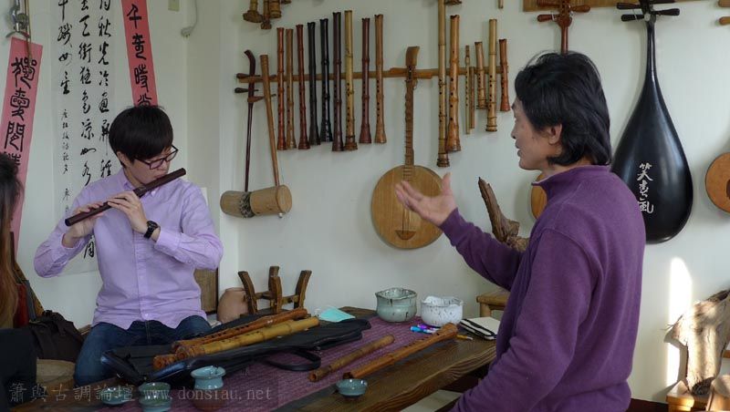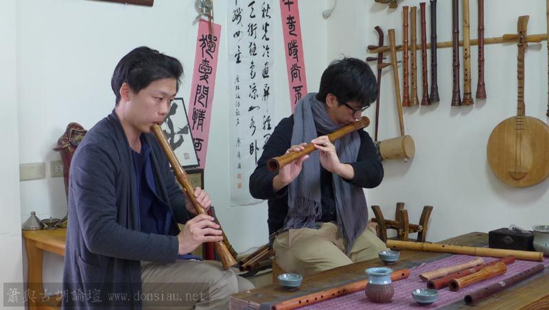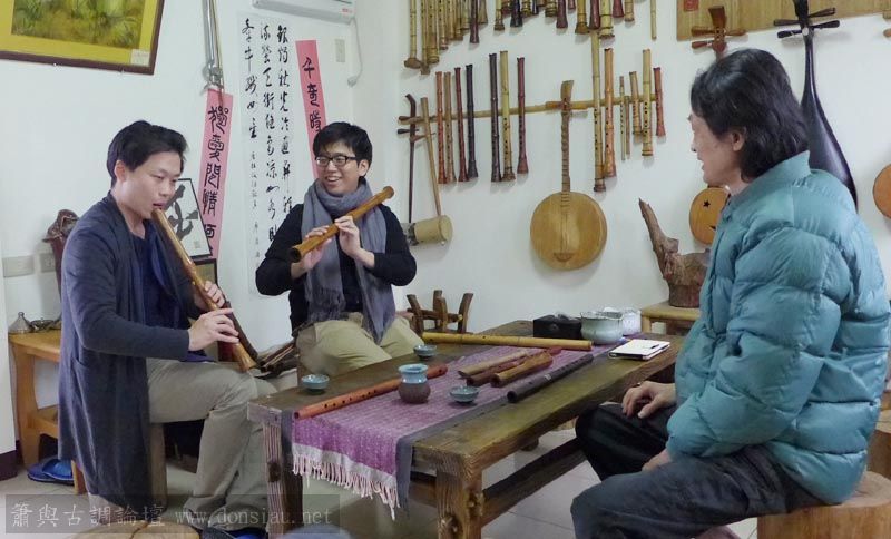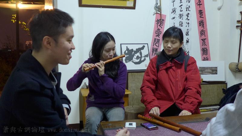 來自宜蘭的兩位笛簫老師一起來試吹文松新笛及橫簫