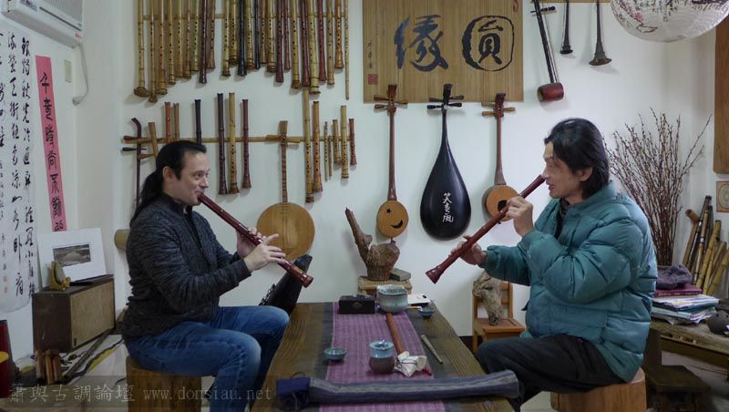 台北市立國樂團三位笛子組老師一同到訪,試吹交件新作品,歐式兩支半音梆笛及一支半音曲笛,