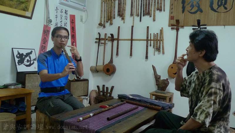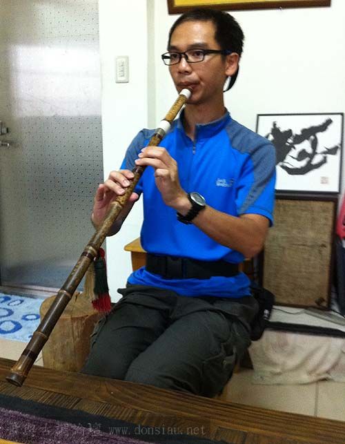 經過調整口風與示範共鳴吹法,再相較他隨身的簫,
