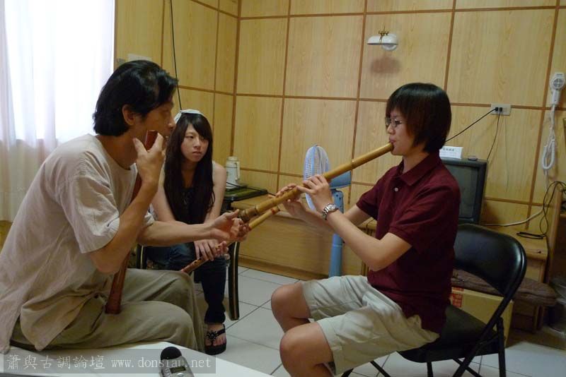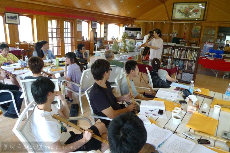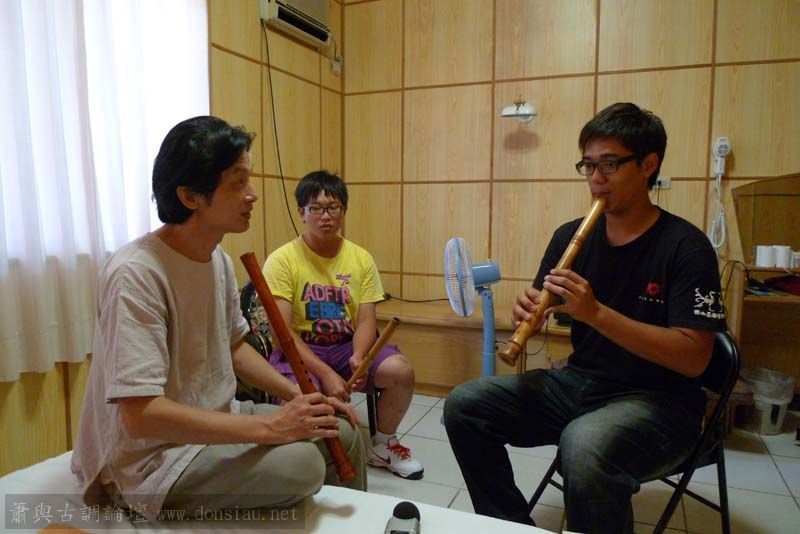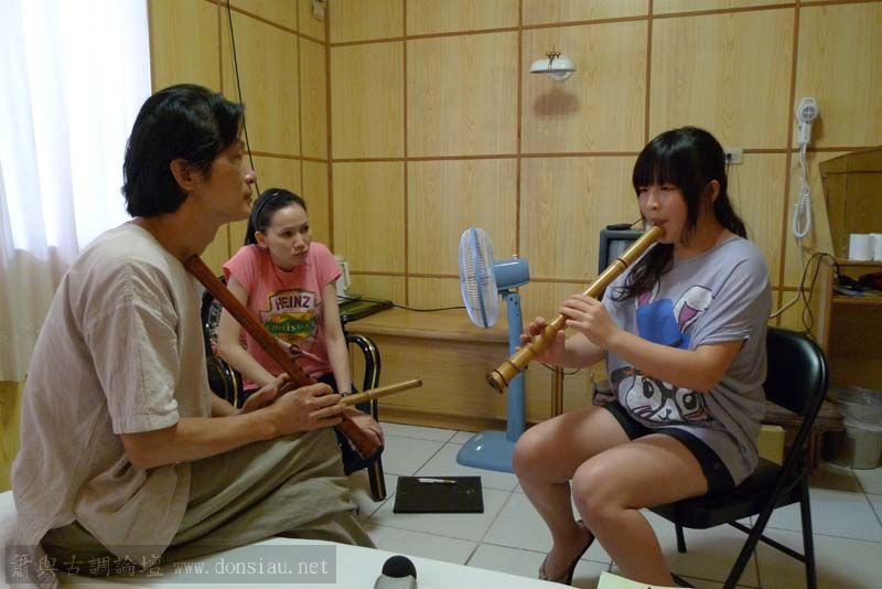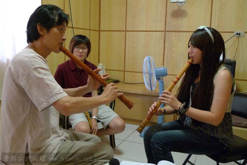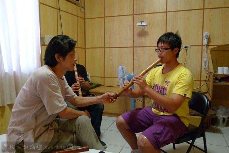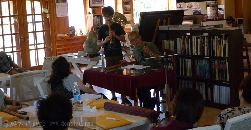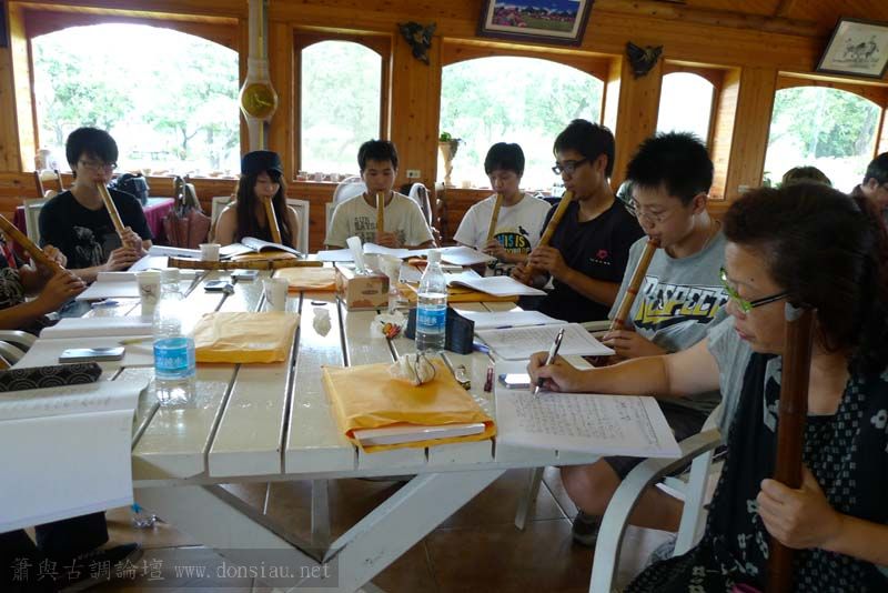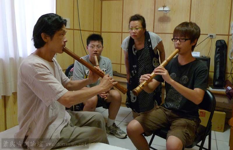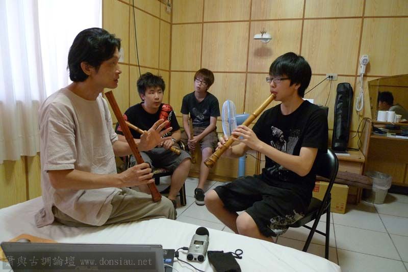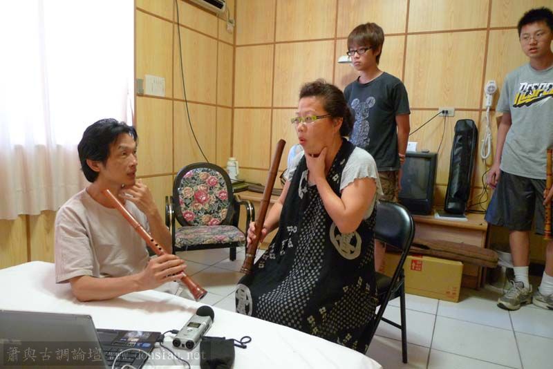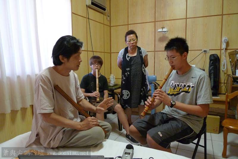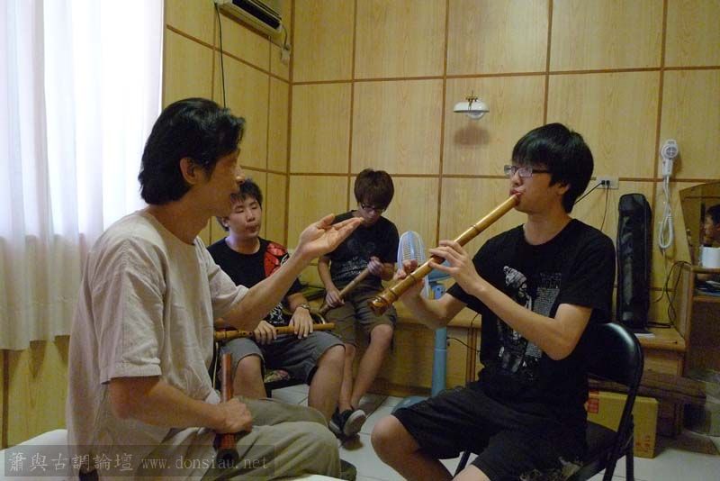 輪流上來吹一小段,並作個別指導,其他人觀摩學習;接續以段落示範,帶引大家一起吹奏學習