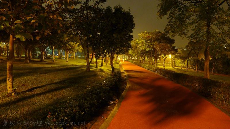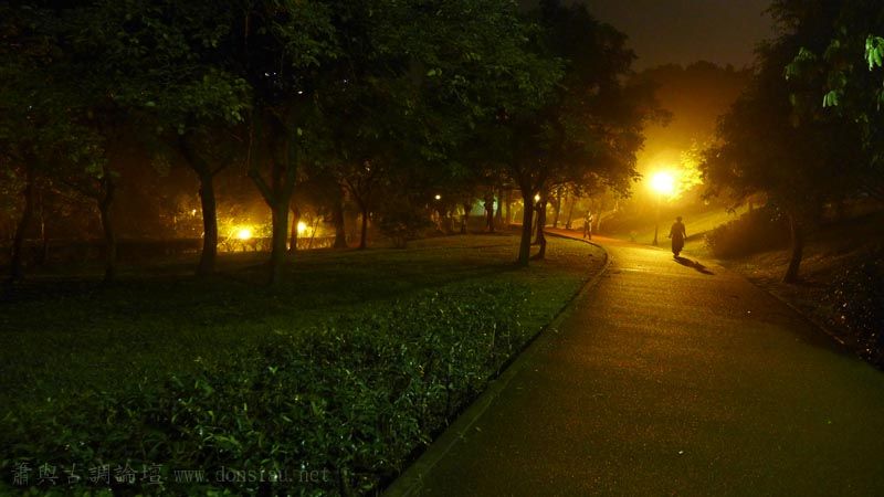 昨晚微雨中與老婆在公園散歩,帶著新相機試試隨手夜拍效果,