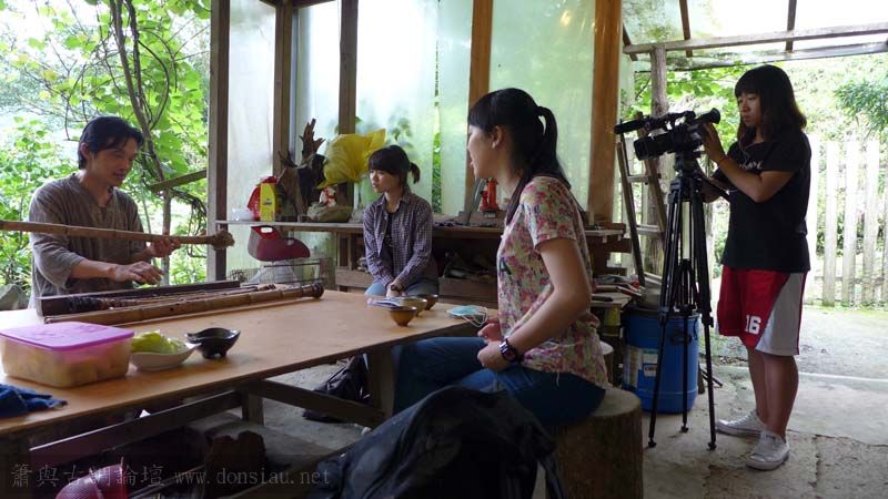 世新大學新聞系同學來採訪,拍攝文松製簫、吹簫及松雲廬活動紀錄片,