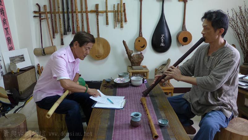 已經退休,將在台灣長住一段時間,特來學習簫曲,用五孔尺八吹簫曲,