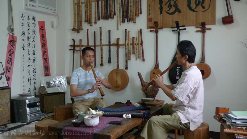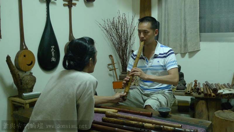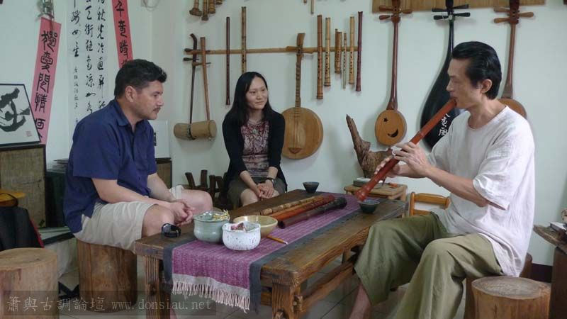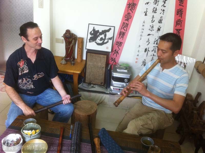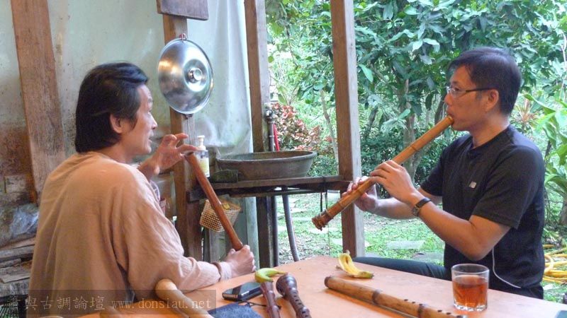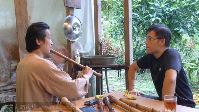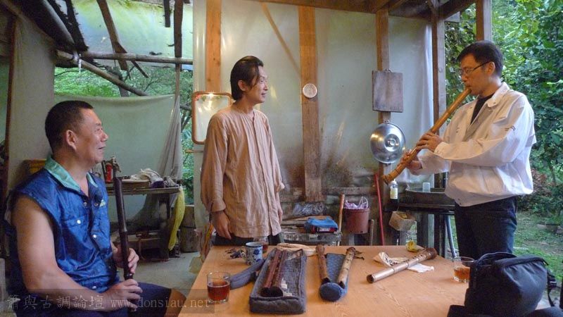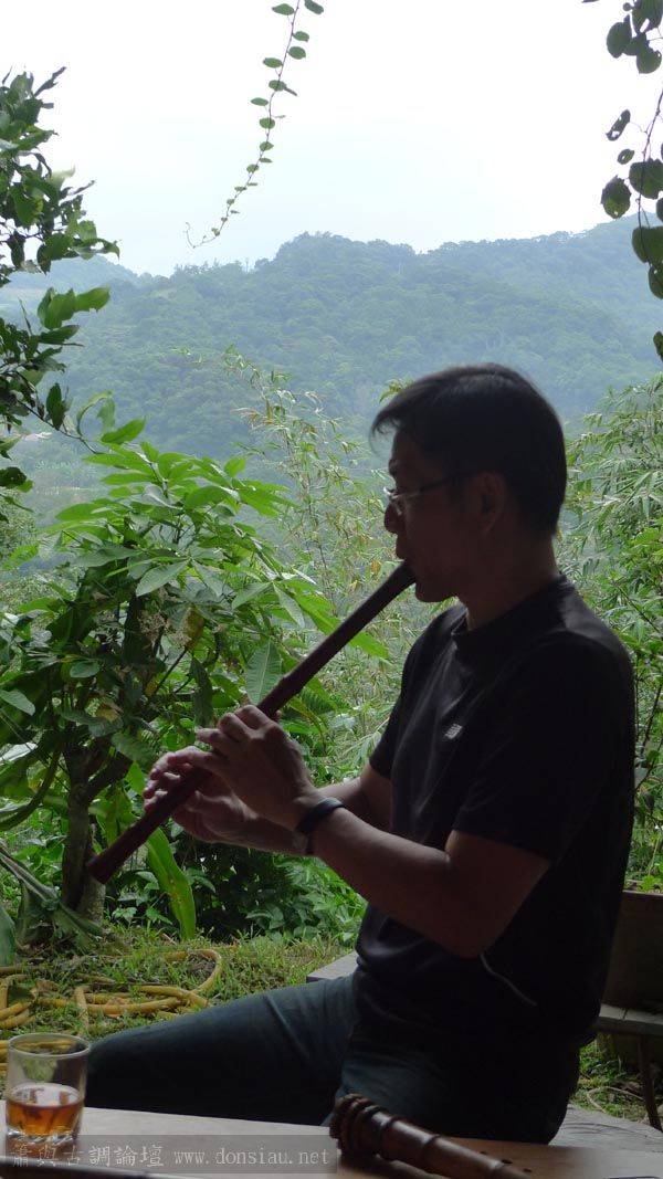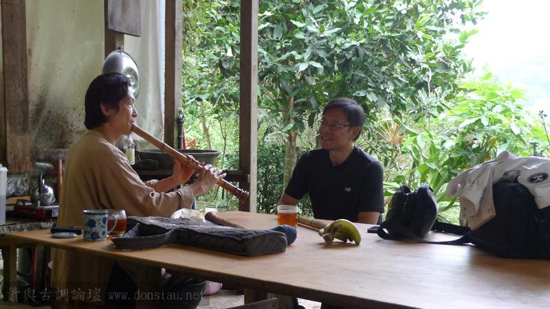 劉永泰老師所訂的簫完成,上山試簫,巧遇柔壯兄騎單車因雨到達,一起愉快交流!