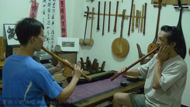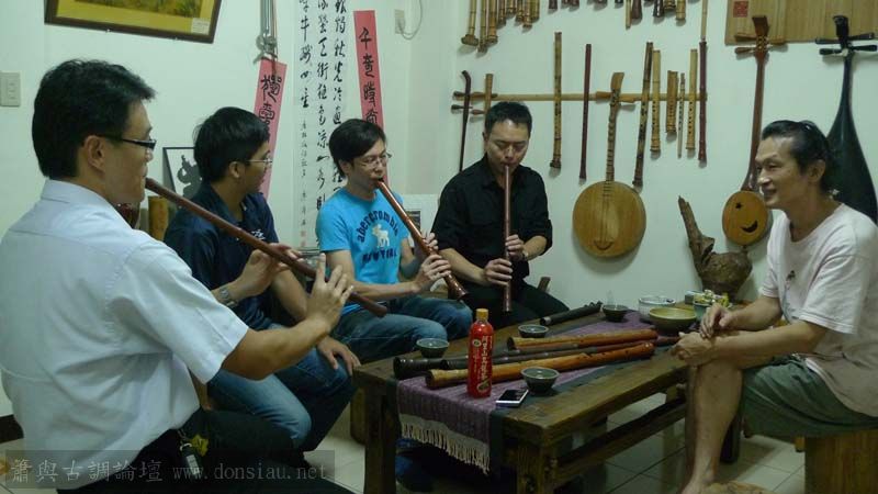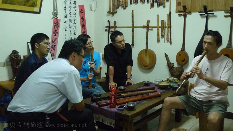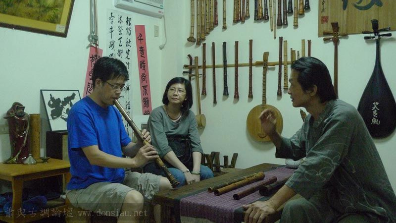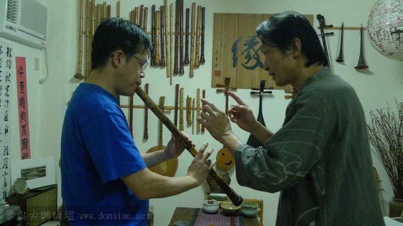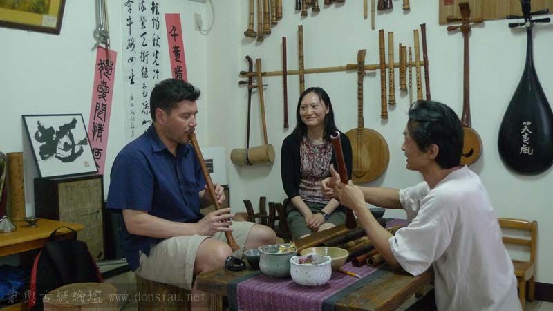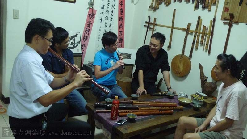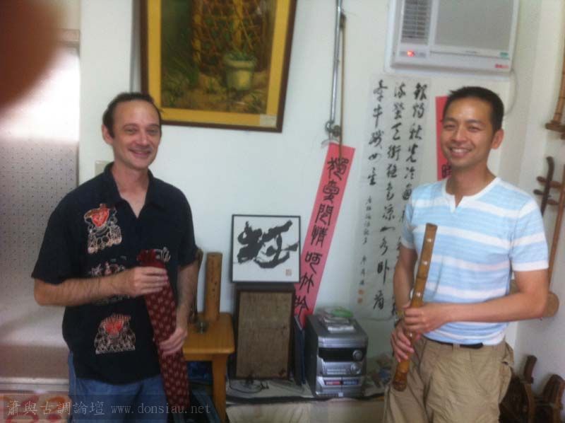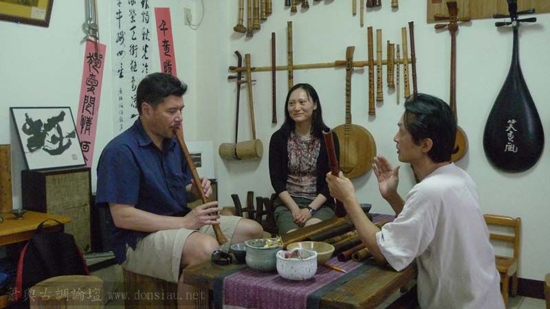 劉永泰老師所訂的簫完成,上山試簫,巧遇柔壯兄騎單車因雨到達,一起愉快交流!