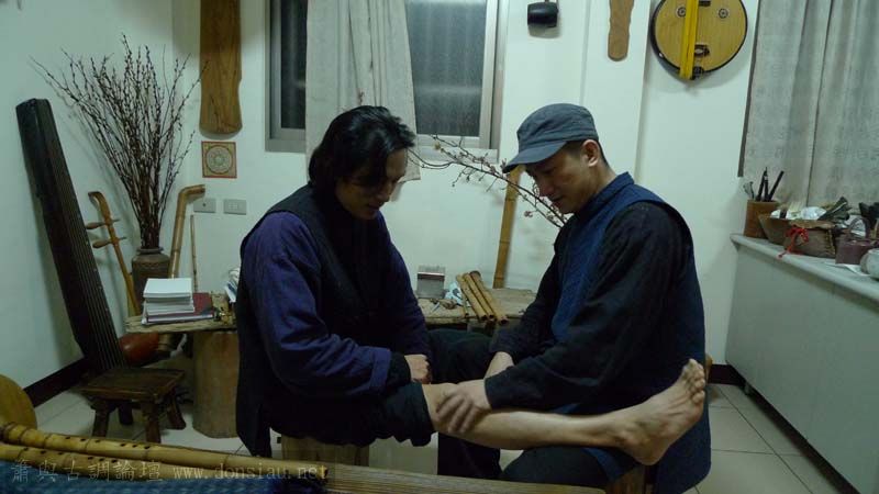 文松製簫磨簫,累積筋骨問題,黃醫師定期返台都檢查調整,