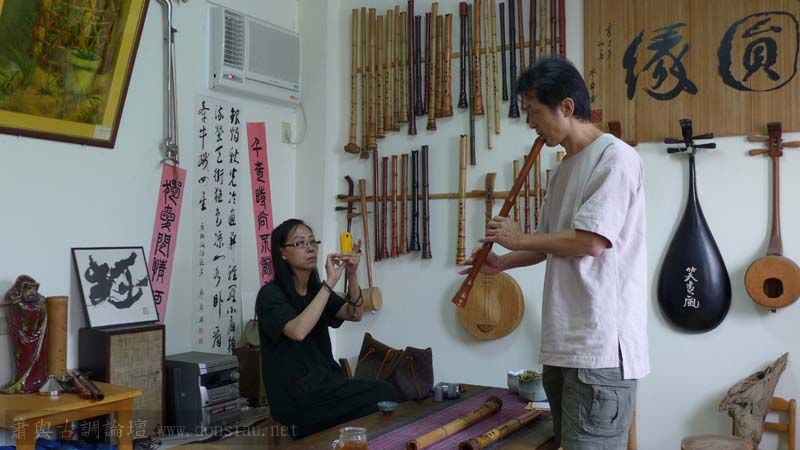 陶笛家萬老師再訪,F調簫完成交件,試吹唐口簫很快掌握,引起很大興趣,