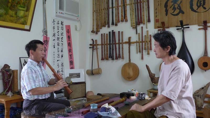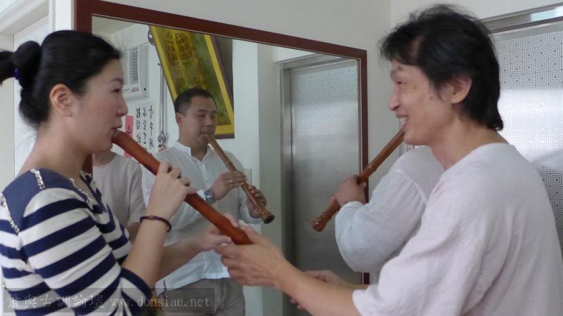 許先生伉儷與鄭先生先後到訪一起交流,許先生加訂一管f調唐口簫
