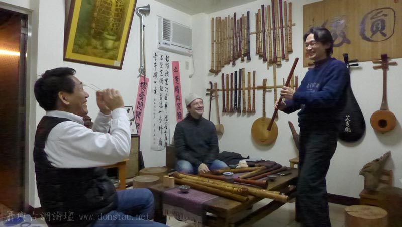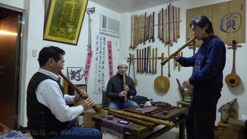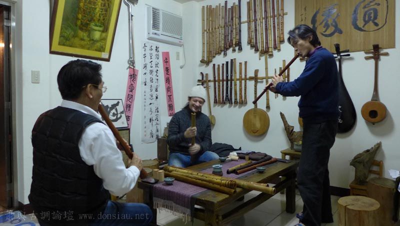 Gary先生再返台,剛好上海憲衛簫友也返台期間,昨晚課後一起交流,大玩各種吹管與吹法,也深入討論歐洲、印度、中東、漢唐等古老音樂文化的共通點與差異性,有趣的示範與交流...