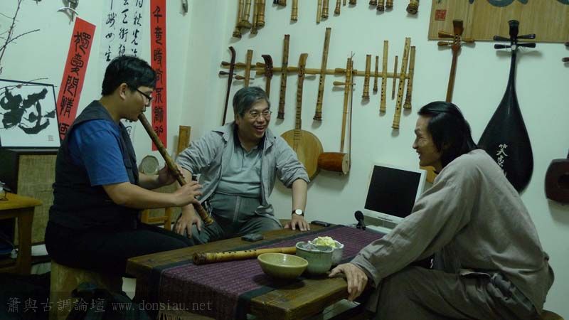 昨晚文大李亮勳與王老師等來訪琴簫合奏,順便也將所訂的簫交出..