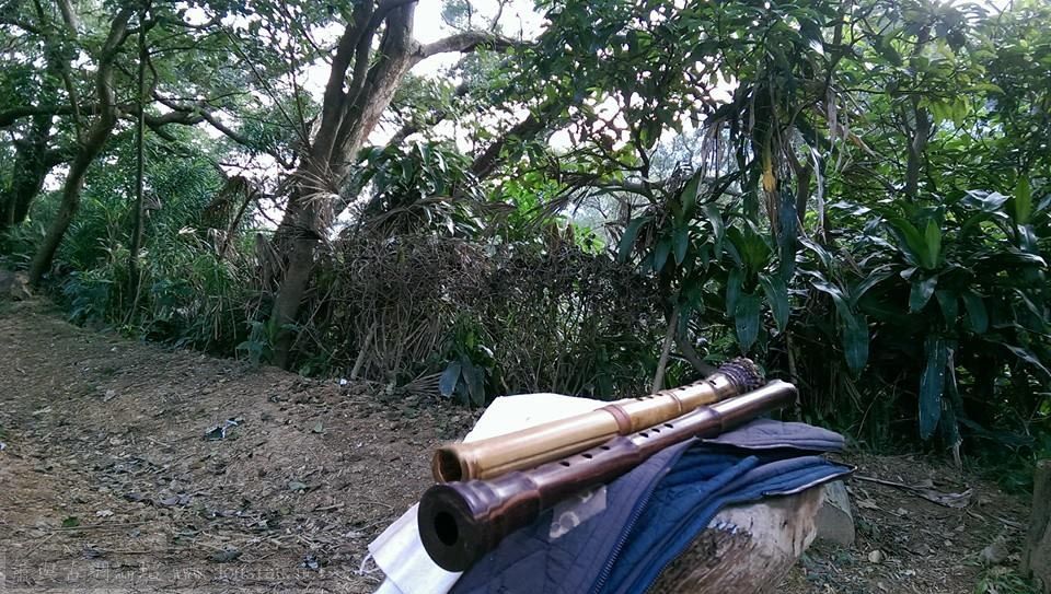 小孫女初學站立,愛聽簫玩簫,頗有架式