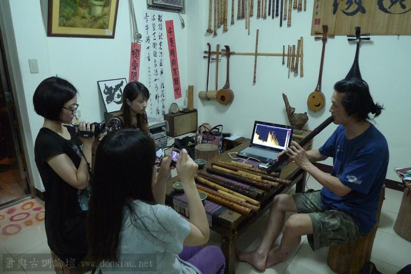三位台師大傳統音樂研究所的同學來做文松簫田野調查