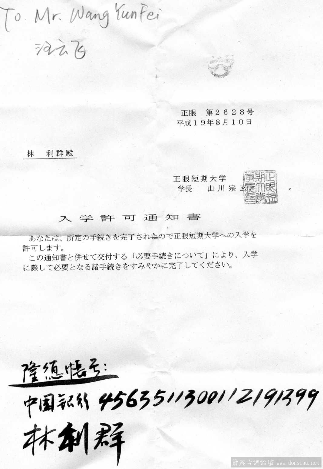圖片附件: [入学许可及帐号] 入学许可及帐号.jpg (2008-1-7 10:41, 126.01 K)
