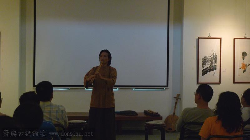 再來就是我喜歡的簫聲了,配合了寧靜的環境,文松老師吹奏平沙落雁時,除了周圍的鳥叫聲,彷彿還聽老師的簫聲中,有雁落拍打翅膀的聲音,在最後靜心即興曲時,閉目聆聽,會跟著進入寧靜祥和的境界,原來唐口簫可以吹的那麼細緻,吹弱音可以小到跟環境的聲音結合,而音準不變,老師真的很厲害!