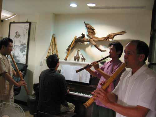 昨日下午於李權紘兄家中小聚,幾位簫友在北縣藝文學會高理事長燈立兄的鋼琴伴奏下,玩得其樂融融!