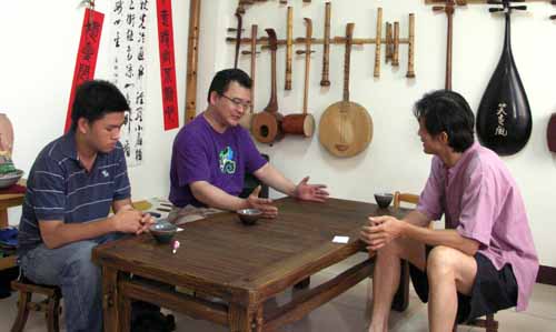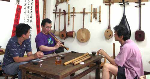 采風樂坊的團長黃老師與行政同事一起來訪簫古調工作室,