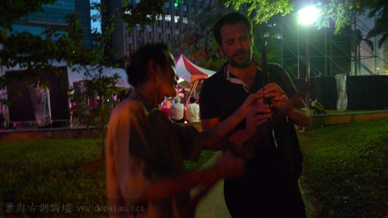 老師帶去的是哪把木箫?德國朋友很感興趣啊。