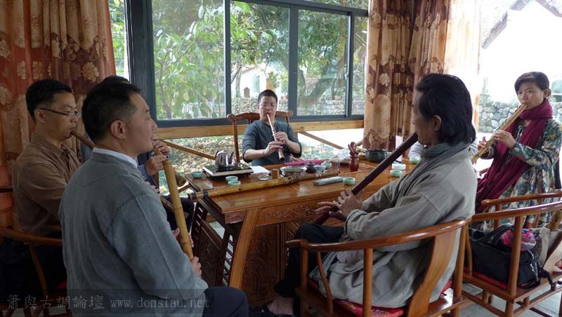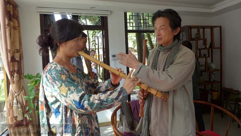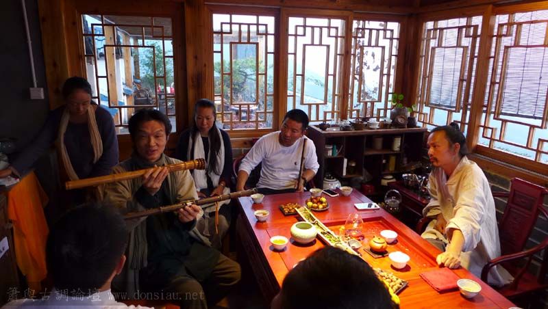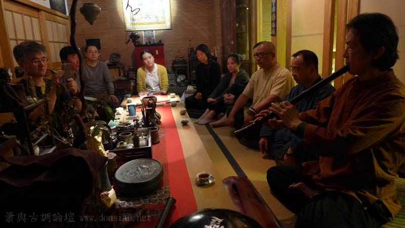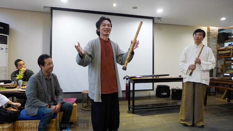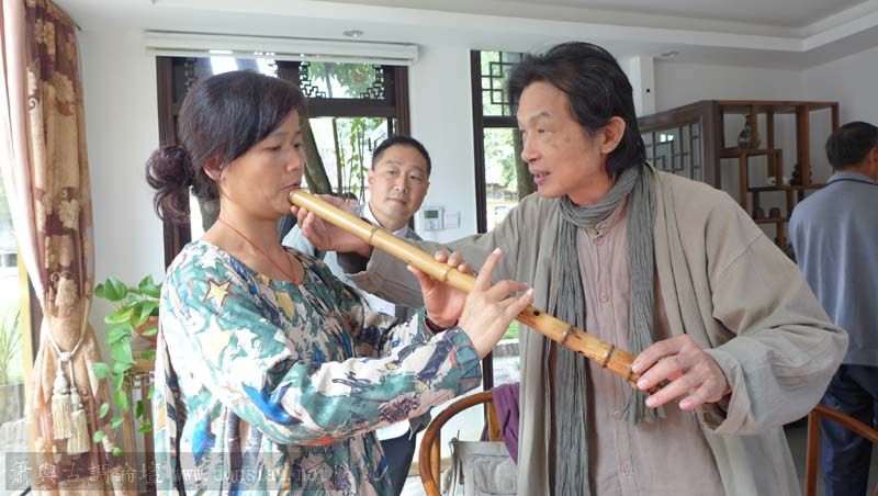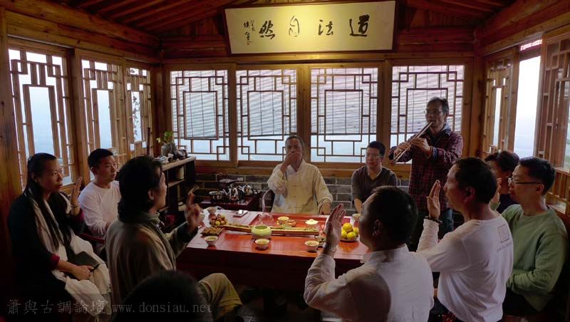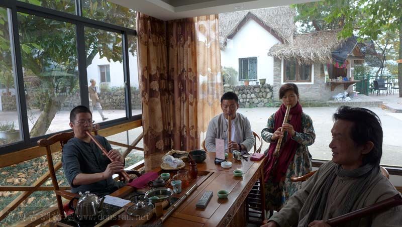 首晚在西湖畔的綺嘉心養生館與龍井草堂主人等杭州藝文人士雅聚,與朱老師一起分享簫聲,