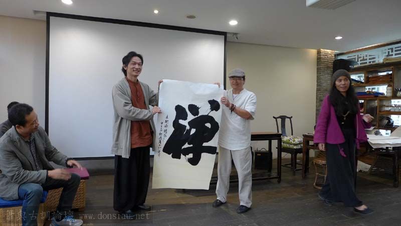 其間周老師揮毫禪字贈與文松,厚重簡樸字體,相當感恩!