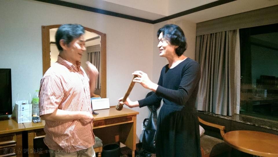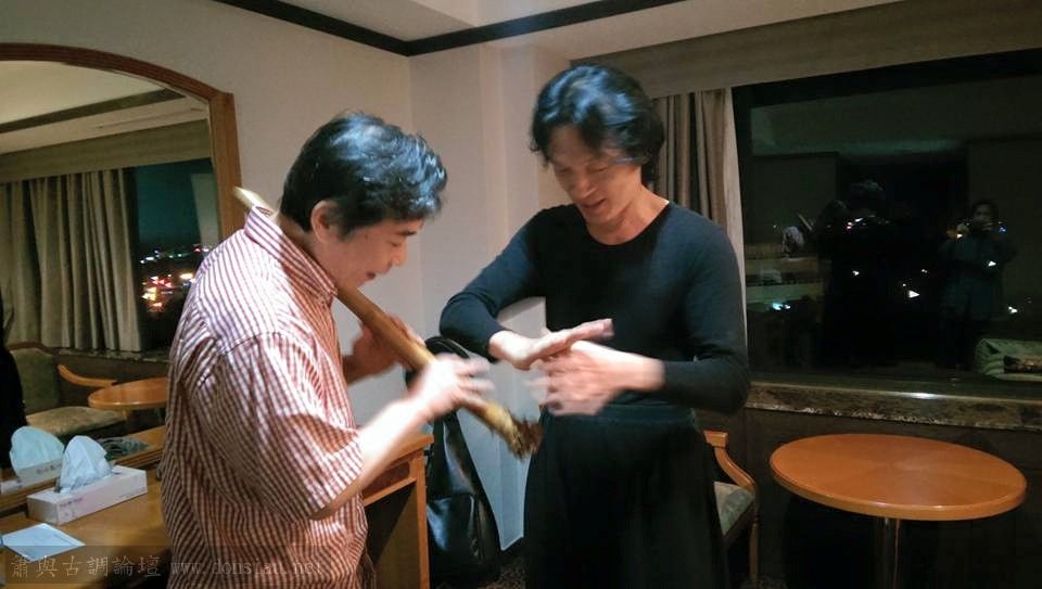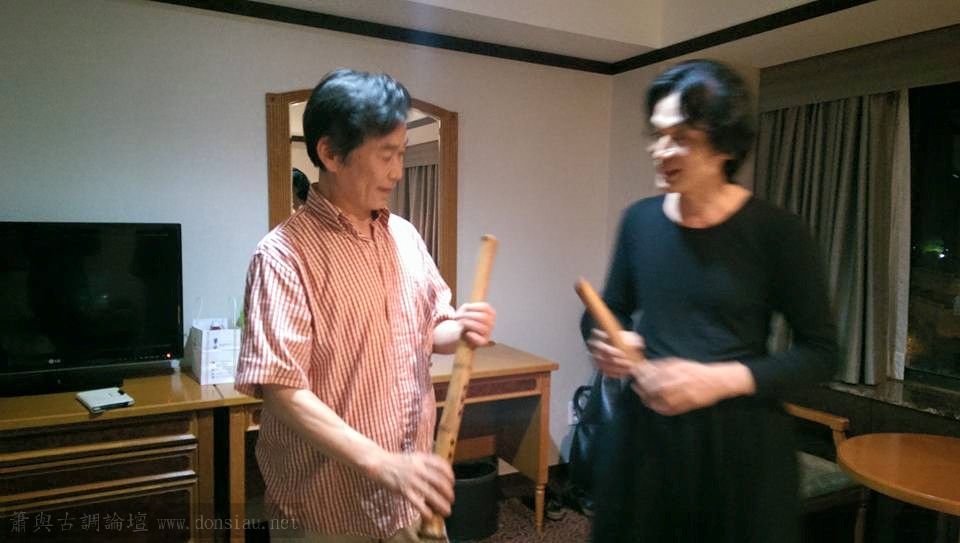 很高興與日本尺八家福田輝久先生伉儷很有緣,在歡迎酒會上坐同桌,