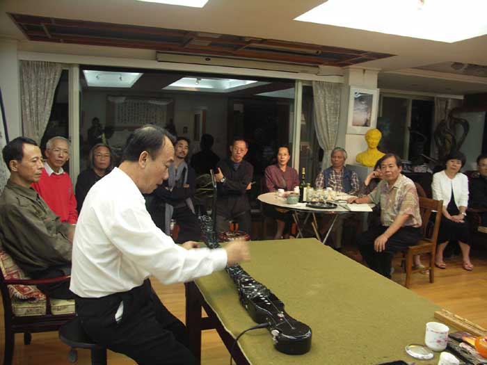 昨晚(11/12)與甯老師、李老師再度於雕塑家周義雄老師雅築聚會,由於兩位老師被台北朋友熱情款待而遲到,陳焜晉老師找來琵琶,要文松夫妻先來一段音樂分享。