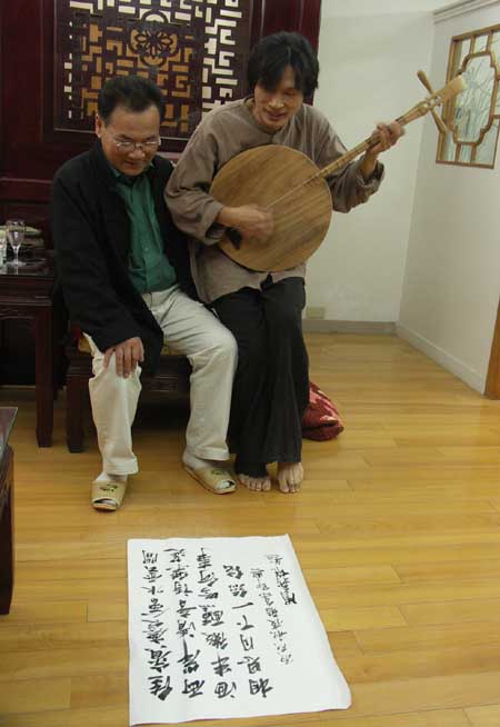 車上留有下午演出用的的月琴,乃先來一段古調彈唱。