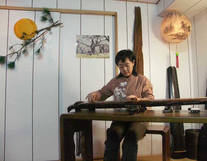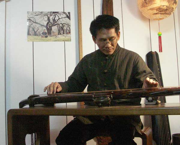回來開始試琴。吳老師帶來一床王鵬的作品,明木所製,安上銅絃,音色溫厚。