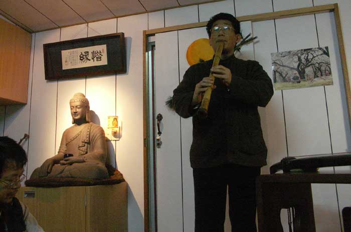 坐定不久,師父遞上一對玉屏簫讓我試試。