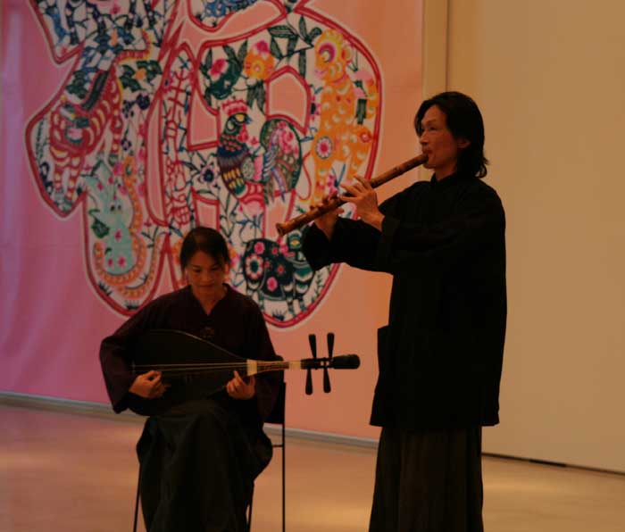: [杉浦先生是美學藝術專家,國際盛名,也是將亞洲圖像美學介紹到歐洲的第一人,演出後對文松月琴吟唱相當讚 .]