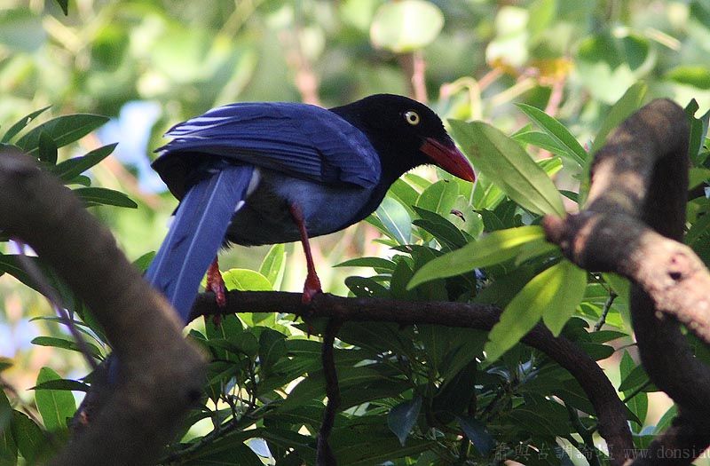 那天又巧遇一群藍鵲,可惜只能遠觀無法親近!