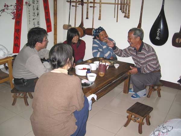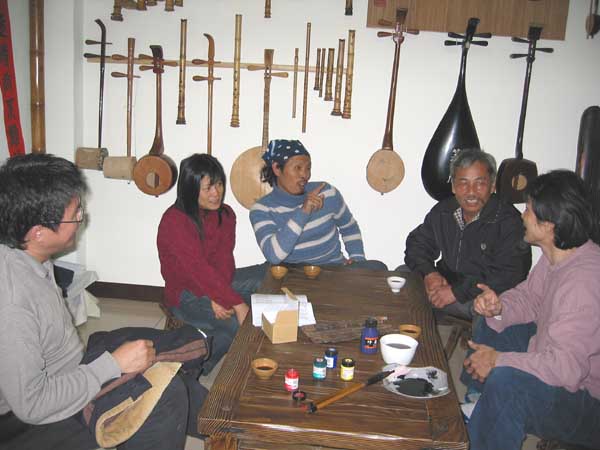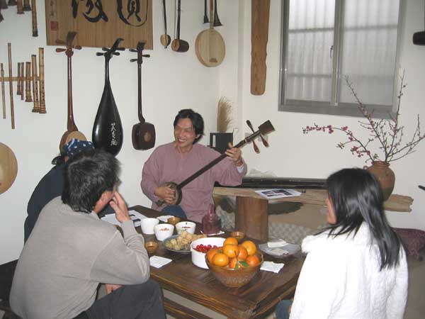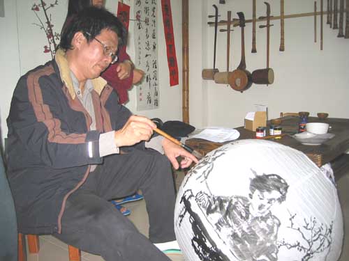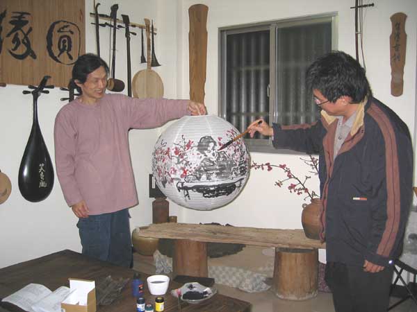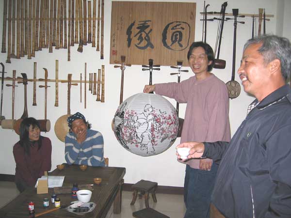 朱老師帶來大圓燈籠,游老師現場寫生文松古琴月琴彈唱及與老婆合奏.