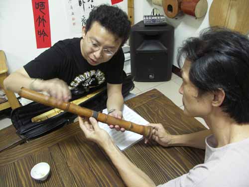昨晚林恩續老師來訪,帶來清朝古尺八,文松略作修理後,試音感覺音色古樸!