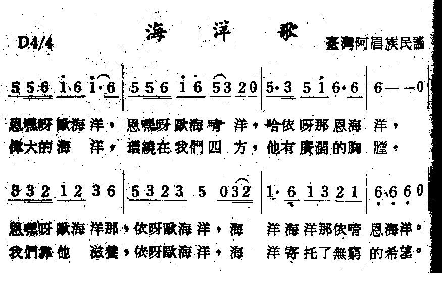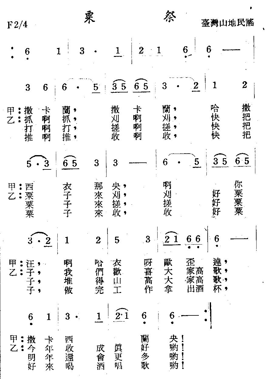 山地歌謠多載於張慶三編的康樂歌曲集,