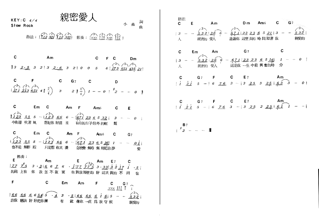 今 天 在 一 大 堆 CD 中 找 到 一 盤 梅 豔 芳 的 歌 曲 精 選,其 中 居 然 就 有 “親 蜜 愛 人”。聽 了 數 遍 默 記 了 旋 律,然 後 用 洞 簫 吹 出 來 ,wenching兄,這 是 否 您 所 指 的“親 蜜 愛 人”? 此 曲 的 樂 句 中 有 許 多 同 音 高 的連 音, 不 知 如 何 處 理 才 恰 當,文 松 老 師 等 高 手 請 出 手 相 助…