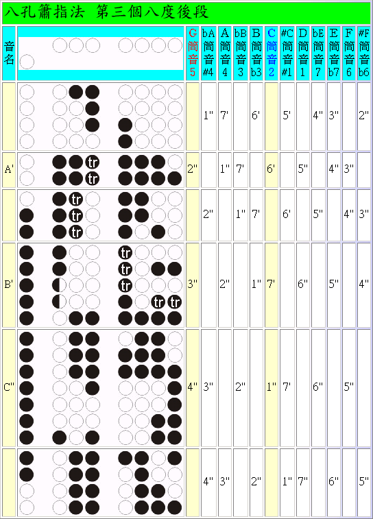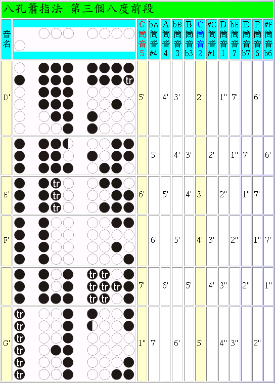 首先感謝寒山簫聲老師費心提供這麽全的指法表。