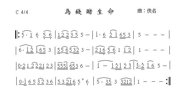 為錢賭生命曲譜