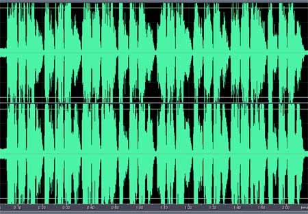 檢查您的錄音波形,都是滿水位,錄音音量可能設定在演講用錄音模式。