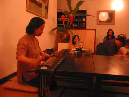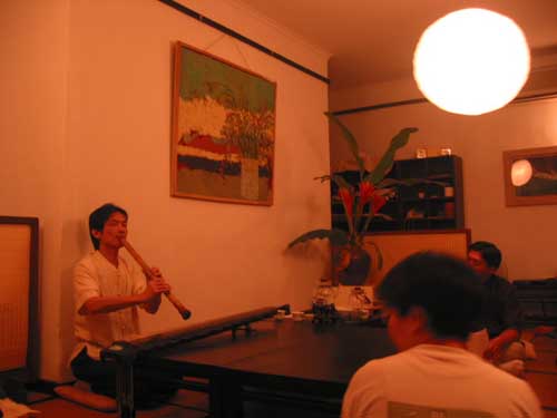 跪坐吹簫還好,我常盤坐吹習慣,只是長簫前面一張琴擋住,又沒退的空間,唐簫吹口是低角度(45度),因此頭要仰著吹,真的是難以放鬆啊!若是洞簫就不會這麼ㄍ一ㄥ啦! : )