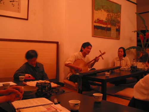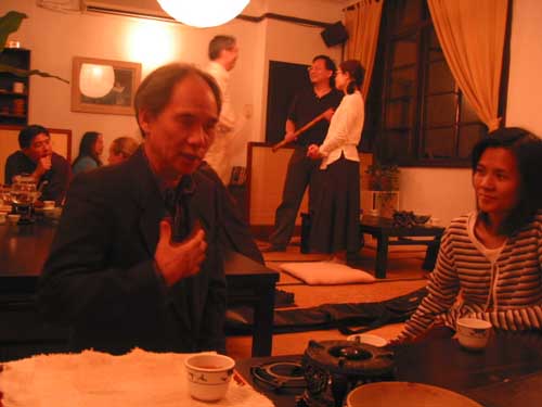 我聽聞有漢詩的主題,因此帶了月琴與唐簫,席間以吟詩與簫曲交流,獲得潘老師相當讚賞,他認為我的吟唱相當符合古詩韻味,好比滷蛋一般,要求再來一首,並建議我多吟唱杜甫的詩;昨夜的聚會,個人佔用太多時間覺得不好意思!