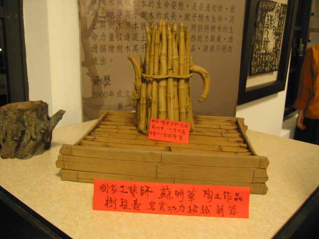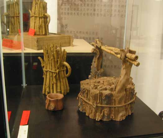 茶桌椅等工藝作品是由得國家工藝獎的陳森桂老師(圖右)的作品>