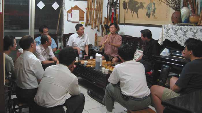 特別感動的是漢唐樂府的進清兄,老遠從淡水趕來赴會,又匆匆趕回平溪,即使一小段時間的聚會,他也願意辛苦奔波,精神可嘉!阿清與我同是南管人,經常來家裡交流,令人欣賞的質樸的心地,簫聲一如其敦厚的性格,演奏於世界各地.