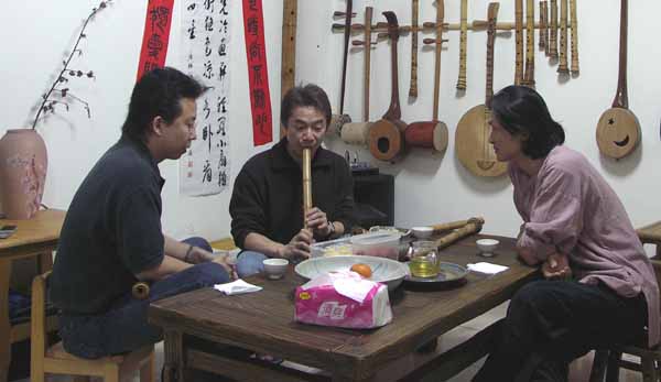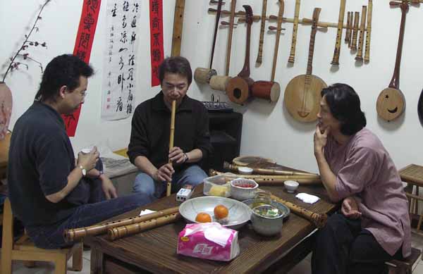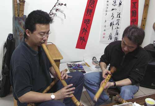 昨晚吳老師與林老師一起再來訪,試吹完成的簫作品.