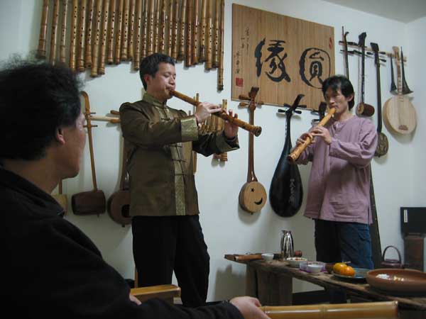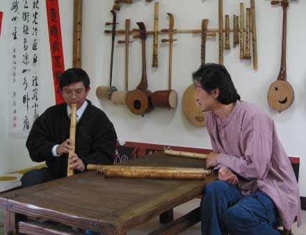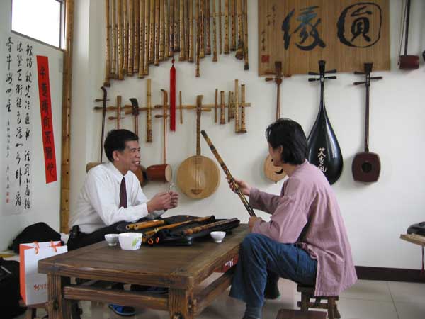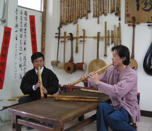 來自斗六的詹先生來交流,鍾愛六孔u吹口傳統簫.