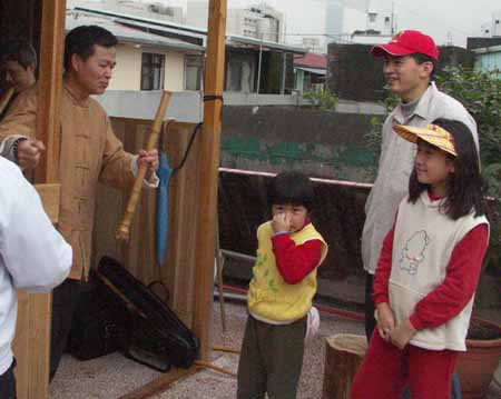 有鄰居聞聲而來,帶小孩子來聆聽,於是愛笛,寒山兄等吹起兒歌