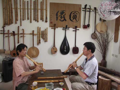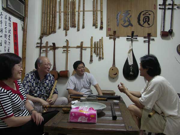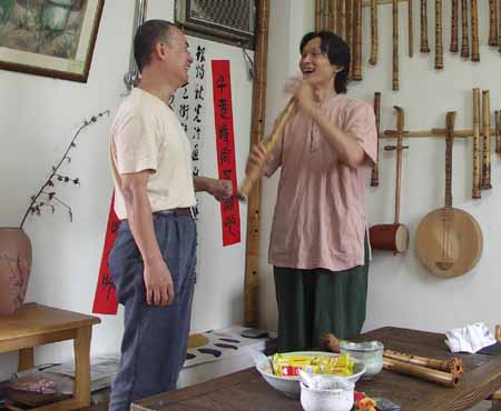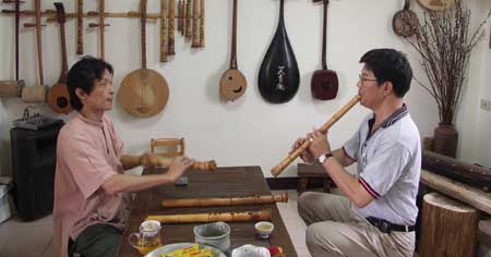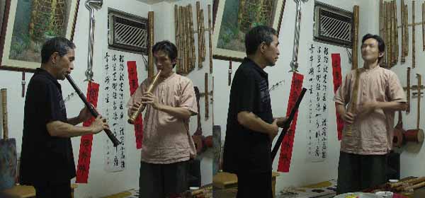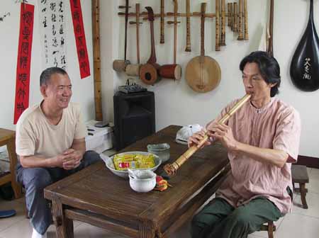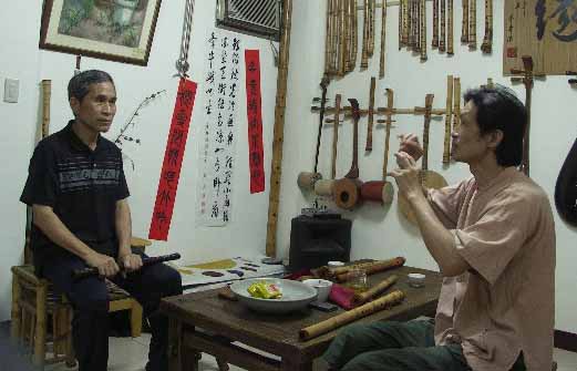 公務員退休的陳先生,除了還在某大學教書,也教書法,其餘時間便是吹簫.