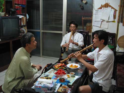 翻一下活動剪影中[洞簫與古琴雅集]紀錄,徐老師指導吹簫用氣下沉.