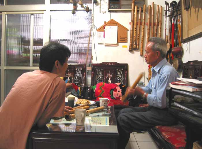 颱風天,風雨中遠自台南來的簫友,今年78歲,中醫師,南管世家.