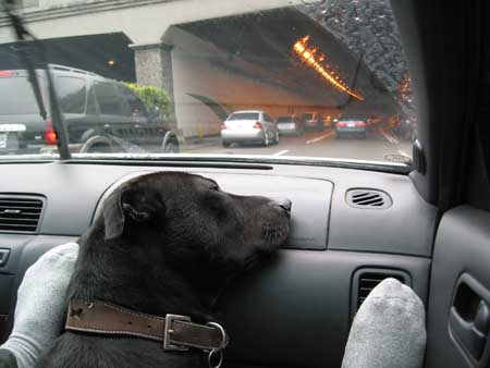 一家五人二狗擠一台車,烏ㄟ擠在前座很委屈!