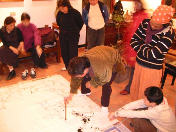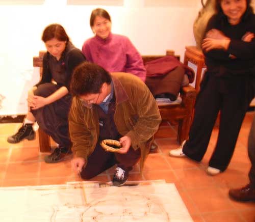 年前再聚於粗坑窯,商談府前展演細節,並請游善富老師繪製群狗旺圖