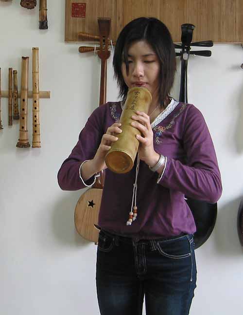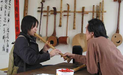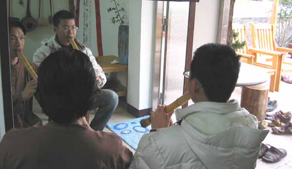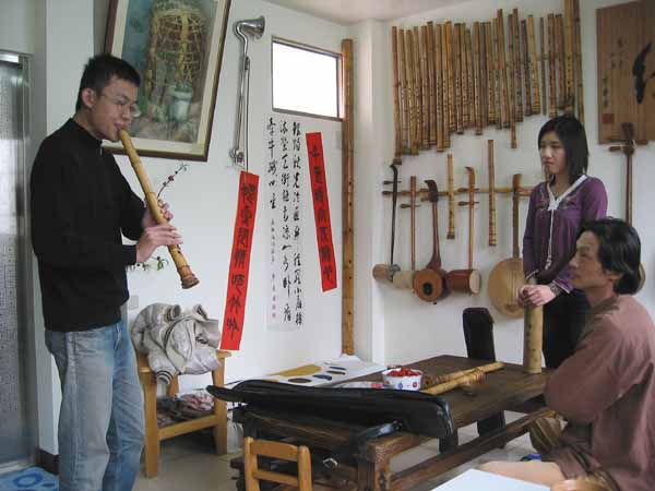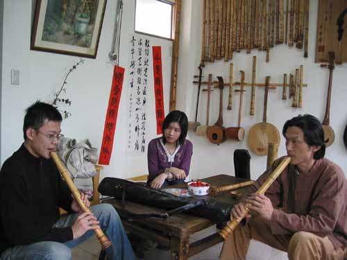 來自台中中山醫學院(左)及彰化師大(中)的兩位同學簫友